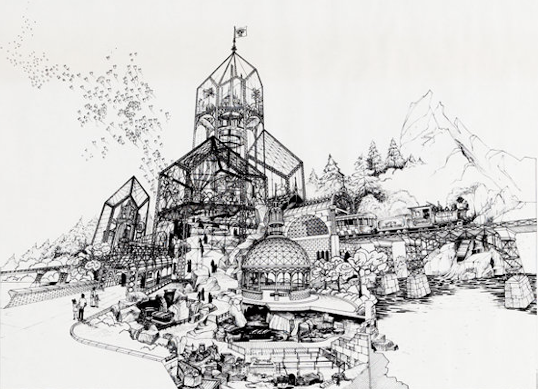 What would this imaginative land hold? Picture a Barbary Coast San Francisco bridging the thematic gap between Fantasyland and Frontierland. The line up of attractions included an Island at the Top of the World water based attraction, a thrilling roller coaster, an innovative shooting gallery, and undersea restaurant, and - get ready for this - an attraction that had a host and friend very similar to Journey into Imagination's Dreamfinder and Figment. No fooling!